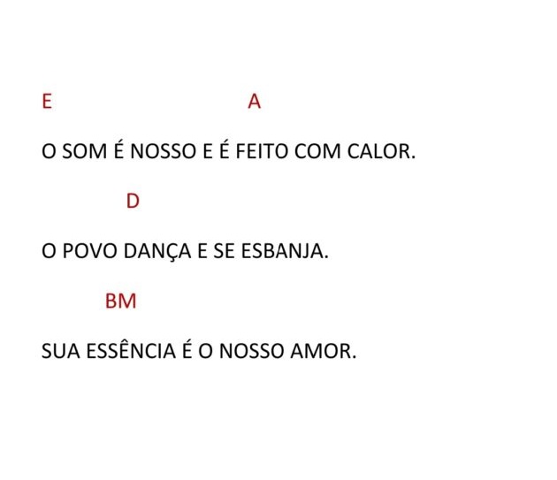 O SOM É NOSSO, É FEITO COM CALOR, O POVO DANÇA E SE ESBANJA, SUA ESSÊNCIA É O NOSSO AMOR.